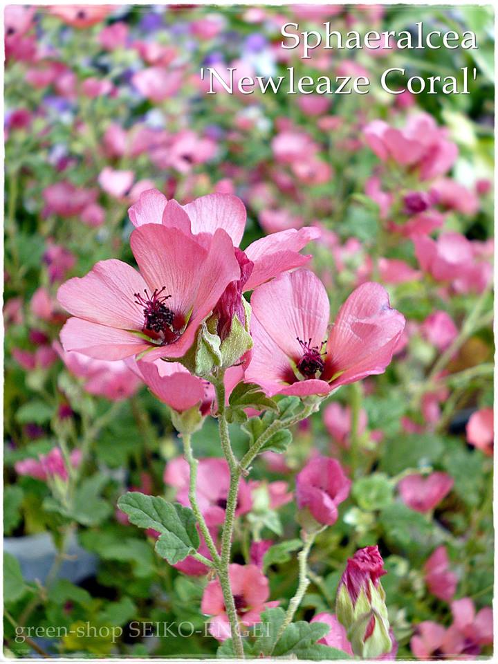 コーラルピンクの小花が可愛い、スファエラルケア‘ニューリーズコーラル’。シルバーがかった葉にスラリとした草姿も涼し気で魅力的。